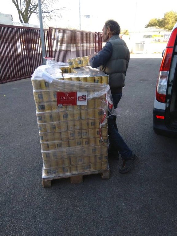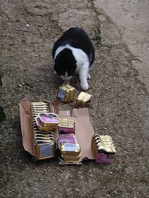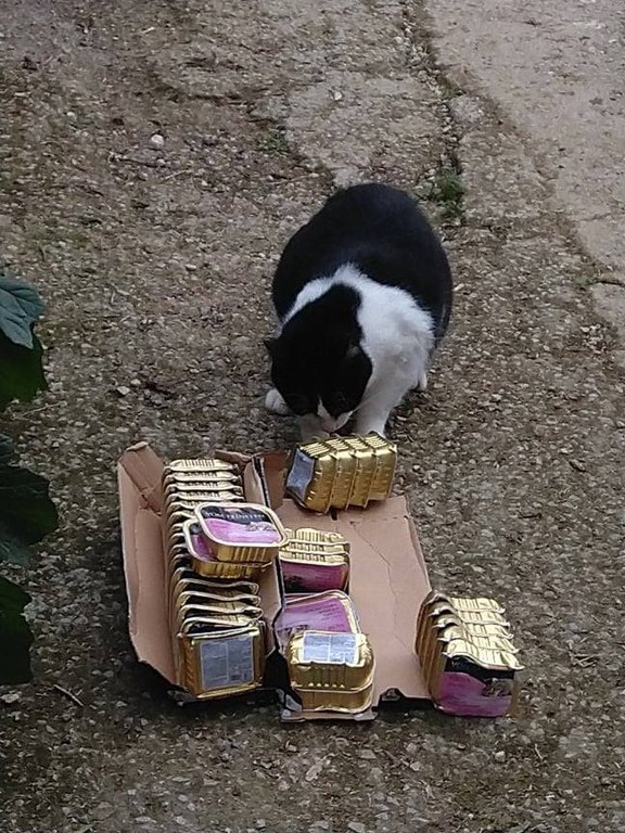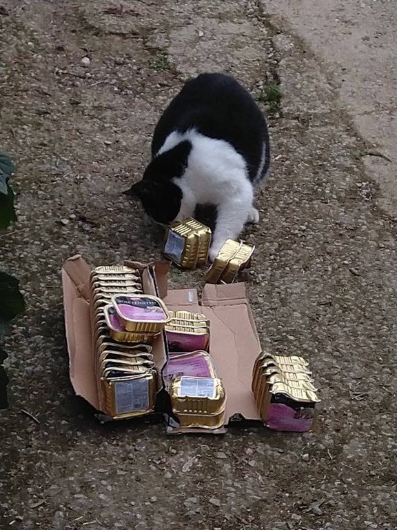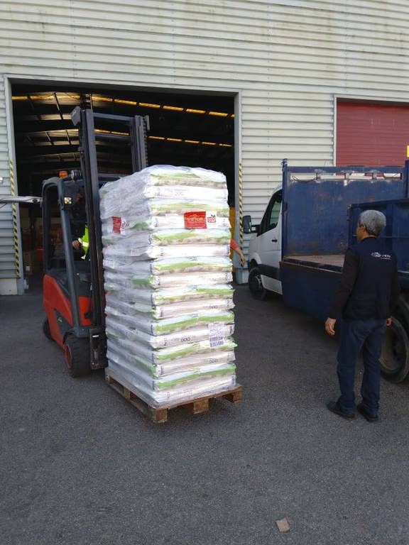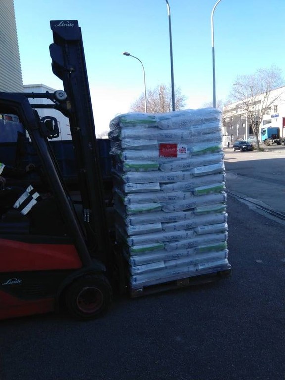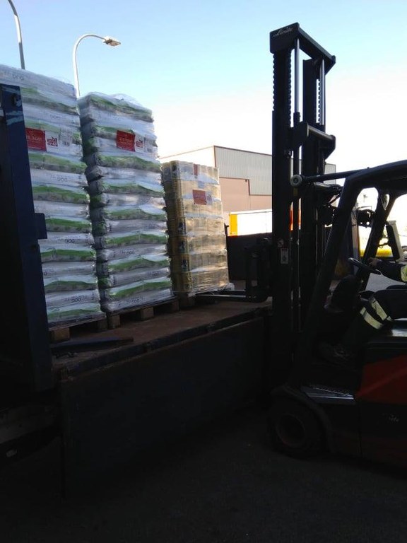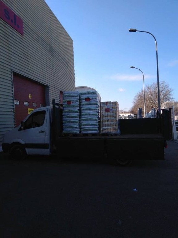 Ankunft von 6 Paletten (ca 3.5t) Tierfutterspenden auf Mallorca.
